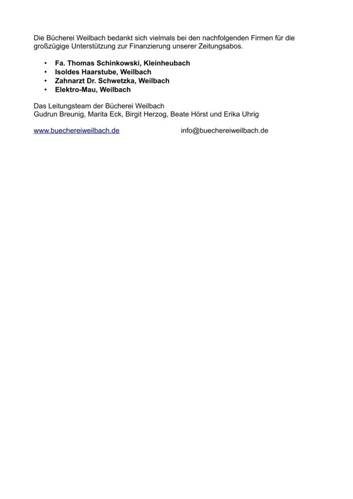 die Tage werden nun wieder kürzer, Zeit für ein gutes Buch auf der Couch. Es gibt wieder viele neue Titel, viel Neues zu entdecken in unserer Bücherei. Ideen für triste Herbsttage finden Sie unter Medienneuheiten Weiterlesen…