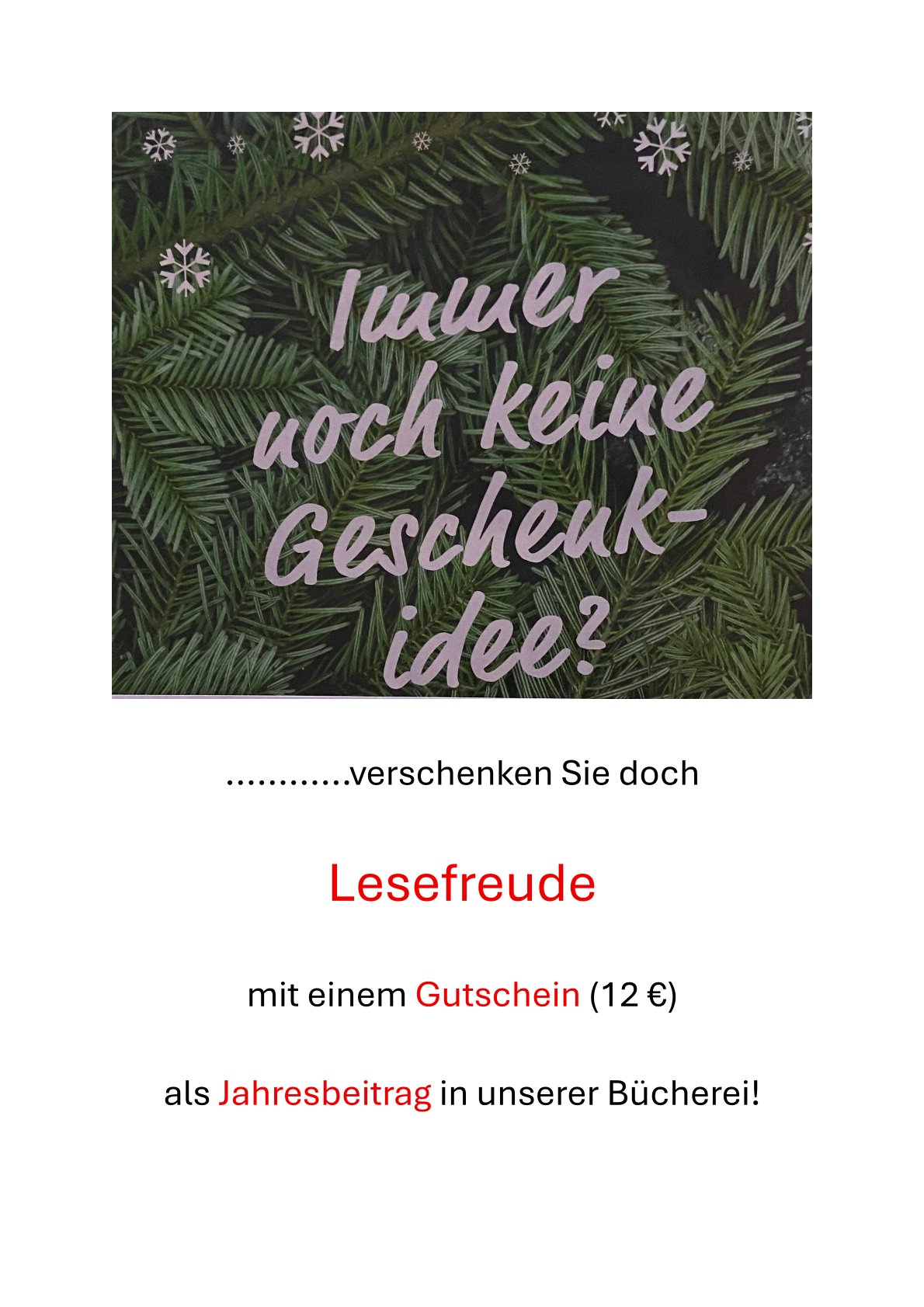 Auch dieses Jahr haben wir wieder Büchertische für Weihnachten und Advent mit Medien aller Art –Buechereineuheiten Dezember – für Erwachsene und Kinder zusammengestellt. Es sind auch verschiedene Neuanschaffungen dabei. Stöbern Sie doch und stimmen Sie Weiterlesen…