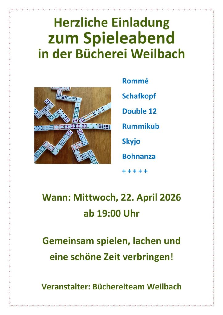 Spieleabend am 22.04. in der Bücherei